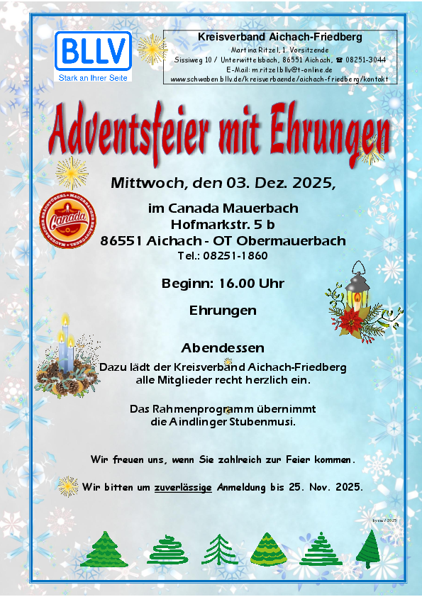 Weihnachtsfeier am 03.12.2025 im Canada Mauerbach. Weitere Infos hier