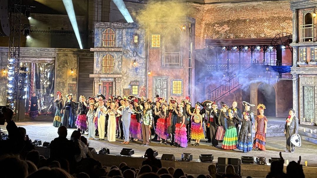 Trotz kräftigem Regen vor Beginn konnten wir “Evita” auf der Freilichtbühne Augsburg trocken genießen.
