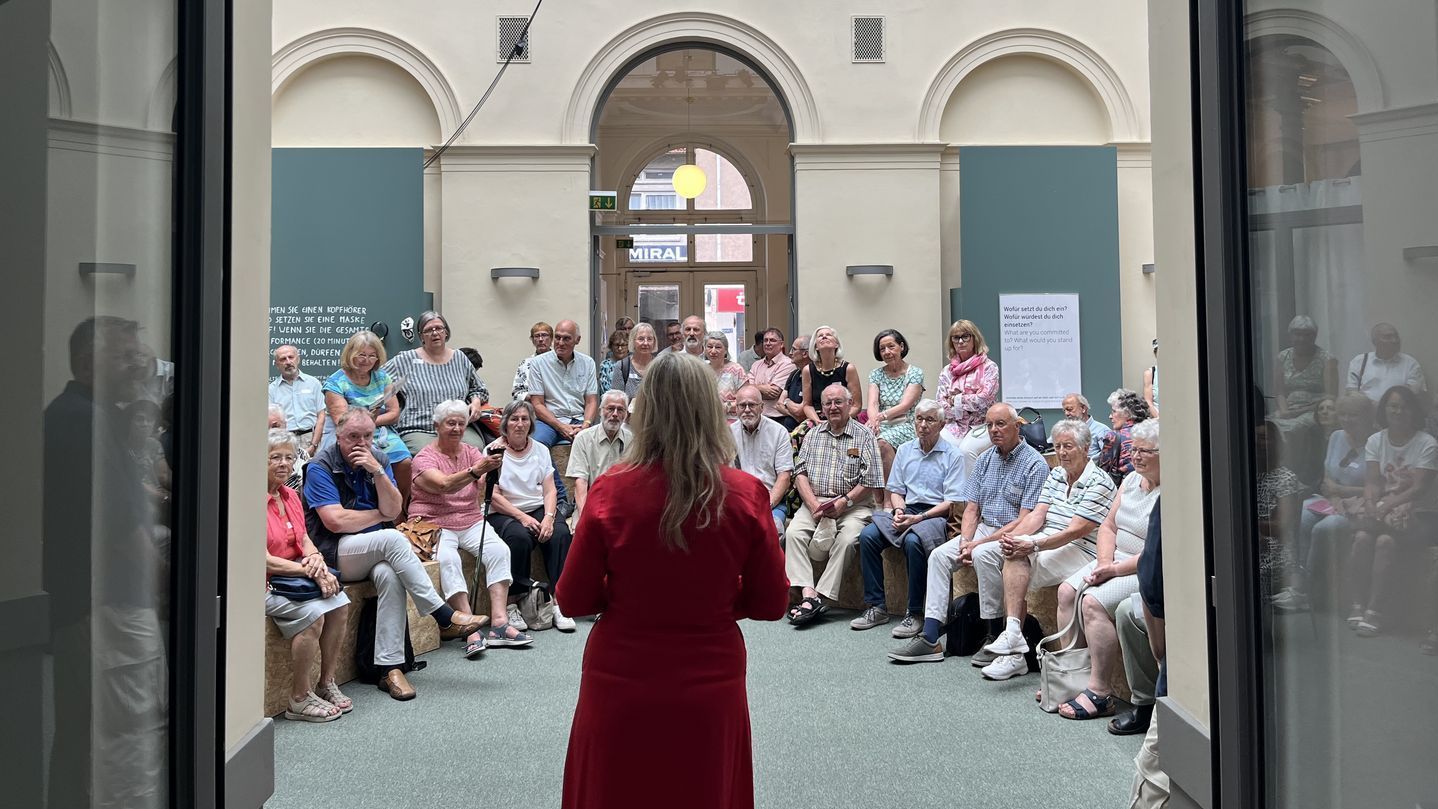 Mehr als hundert Pensionisten aus ganz Schwaben trafen sich unlängst in Memmingen zum diesjährigen Treffen der ehemaligen Lehrer:innen. Zu Beginn der Veranstaltung begrüßte Hausherr Axel Lapp die rüstigen Senior:innen in der MEWO Kunsthalle, in der sich derzeit eine aktuelle Ausstellung zum Thema Freiheit befindet. Auch OB Rothenbacher ließ es sich nicht nehmen, die Lehrerschaft persönlich zu begrüßen. Die Ganztagesveranstaltung stand ganz im Sinne der Verkündigung der Memminger Freiheitsrechte 1525, deren 500-jähriges Jubiläum dieses Jahr gewidmet wurde. So haben sich Kreisvorsitzende Inge Hörtensteiner samt Gemahl Bertram im Vorfeld der Veranstaltung akribisch Gedanken darüber gemacht, wie dies für die Pensionisten umzusetzen sei. Herausgekommen ist ein tolles Potpourri verschiedenster Aktivitäten, die die Teilnehmer vorab ausgewählt hatten: Von diversen Stadtführungen unterschiedlichster thematischer Ausprägung bishin zu weiteren aktuellen Ausstellungen im Bonhoeffer-Haus, sowie einem Besuch des Stadtmuseums oder der Martinskirche inklusive Turmbegehung, war für jeden was dabei. Auch die Geselligkeit kam dabei nicht zu kurz. Neben einem gemeinsamen Mittagessen gab es nachmittags noch Kaffee und Kuchen in der benachbarten Elsbethenschule. Alles in allem eine rundum gelungene Veranstaltung des KV Memmingen unter Leitung von Inge Hörtensteiner. Mit unterstützt wurde sie dabei ganztägig von ihrem Memminger KV-Team.