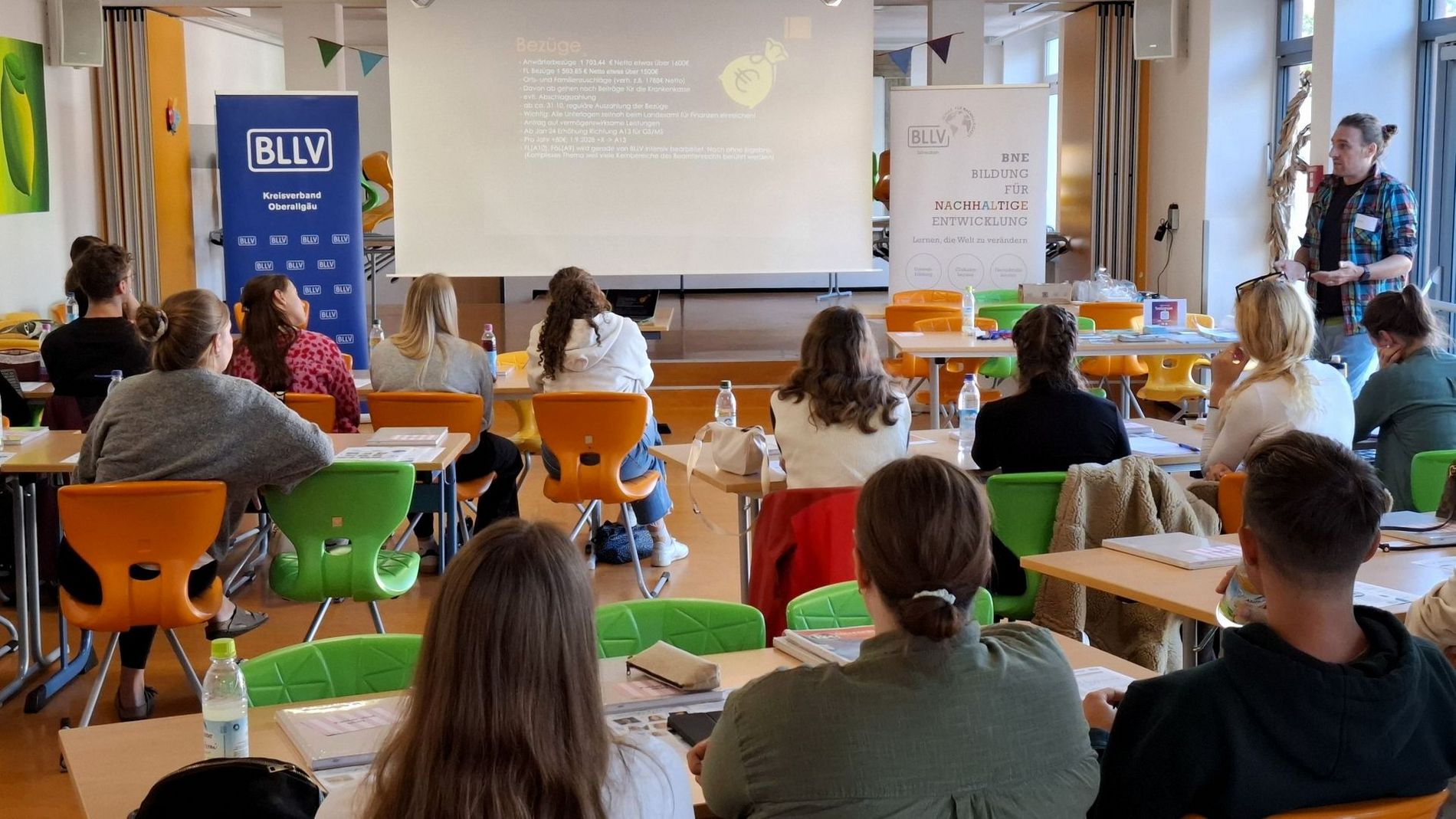 Doch Sebastian Danner, der den kurzweiligen Vortrag hielt, wusste Abhilfe zu schaffen. Mit zahlreichen praktischen Beispielen und wertvollen Ratschlägen beleuchtete er zentrale Themen wie notwendige Versicherungen, effektive Unterrichtsgestaltung und die umfassenden Unterstützungsmöglichkeiten durch den BLLV. Er entkräftete dabei viele Vorurteile und vermittelte realistische Perspektiven für die zweijährige Seminarzeit. Die Referendarinnen und Referendare schätzten diesen umfassenden Einblick, der zahlreiche ihrer anfänglichen Bedenken ausräumen konnte. Im Anschluss bot ein gemütliches Beisammensein Gelegenheit, individuelle Fragen in persönlicher Atmosphäre zu klären und erste wichtige Kontakte für den bevorstehenden Schulalltag zu knüpfen, wodurch die anfängliche Skepsis einer positiven Erwartungshaltung wich.